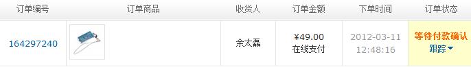 (2)下单时间:2012-03-09 20:27:28