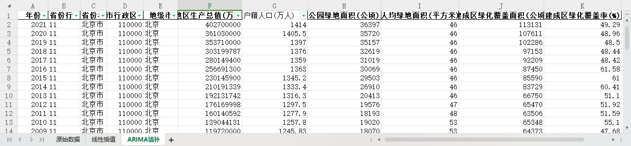 excel数据文件包原始数据(由于多年度指标不同存在缺失值)、线性插值、ARIMA填补三个版本,提供您参考使用。