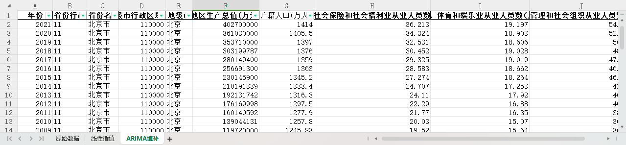 excel数据文件包原始数据(由于多年度指标不同存在缺失值)、线性插值、ARIMA填补三个版本,提供您参考使用。