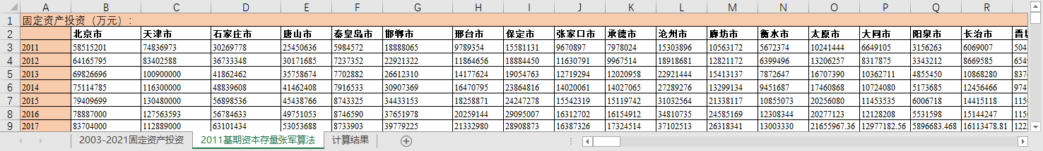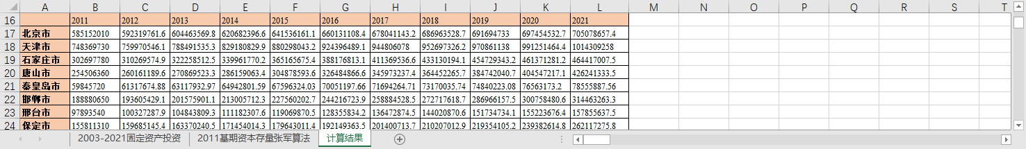2011基期资本存量张军算法2011-2021