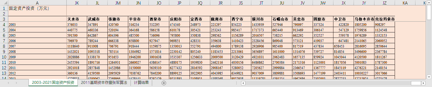 2011年为基期全国各地级市固定资产投资价格指数固定资本存量数据2003-2021
