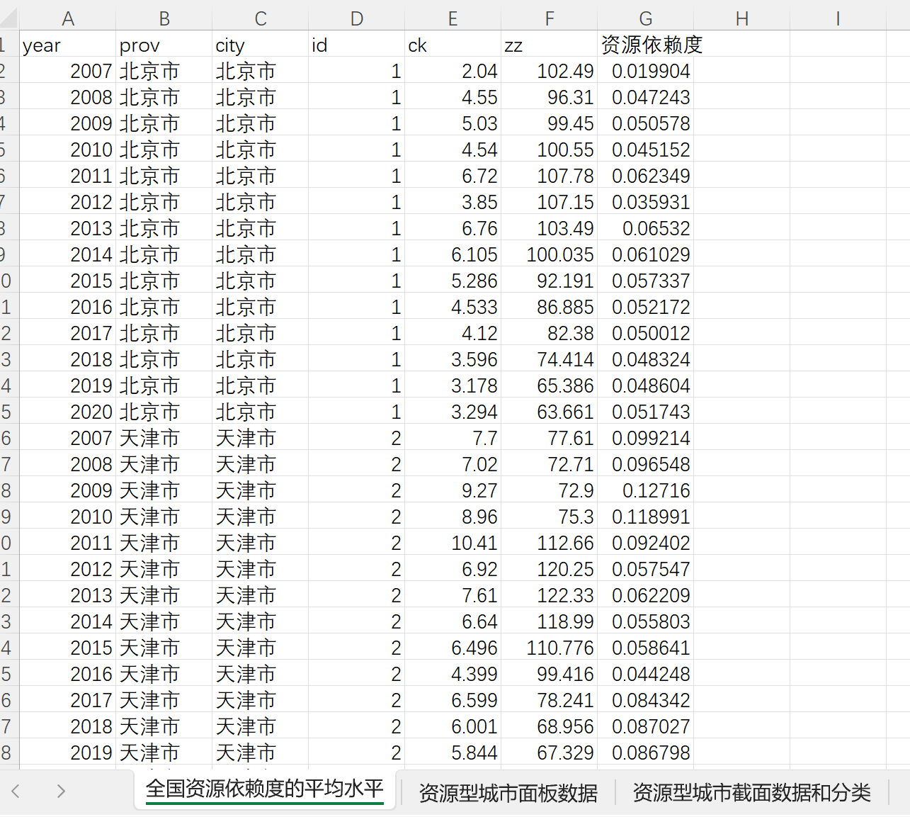 此外也单独整理了资源型城市的资源依赖度数据。有原始值和线性插值数据两种。可直接用于实证。