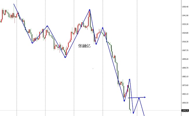 黄金本周出现了连续下跌走势,高点在1927一线溃败,周五最低点给到了1846.18美元一线,周线级别收录一根大阴线,高价没有破前高,低价下破新低,出现了落尾的走势,下周延续看跌为主。整体趋势上看,目前黄金在1952-1947形成双顶后,金价出现了一轮下跌的三浪走势,1947-1846幅度已经出现了超预期的下跌,后市第四浪的调整强弱点在1892美元,进一步突破后将改变空头格局,在此位置之前就需要关注1863-1878美元阻力。综上所述张融亿总结:黄金空头趋势中,下周操作上考虑反弹做空为主,低多为辅,上方关注1863-1878美元/盎司,下方关注1826-1820美元/盎司。