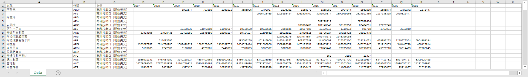 2007-2021全球世界各国高科技出口量(现价美元).xls