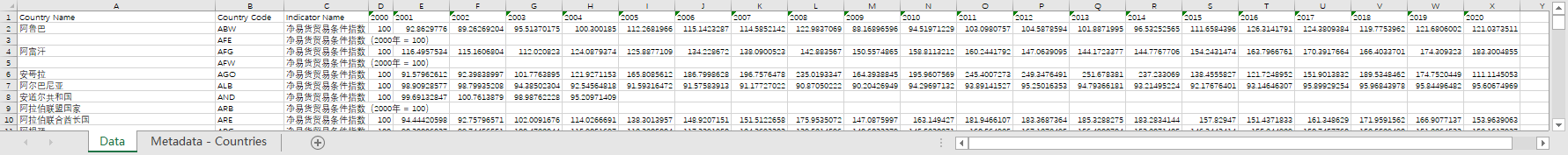 2000-2020全球世界各国净易货贸易条件指数(2000年=100)).xls