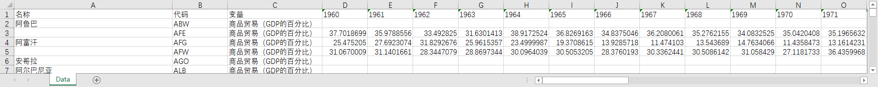 1960-2022全球世界各国商品贸易占GDP百分比.xls