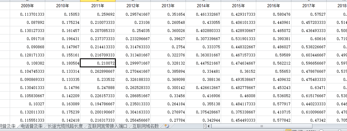 数字基础设施数据(2011-2020)-互联网普及率、光缆长度、电话普及率、域名数量等-数据(excel版本)