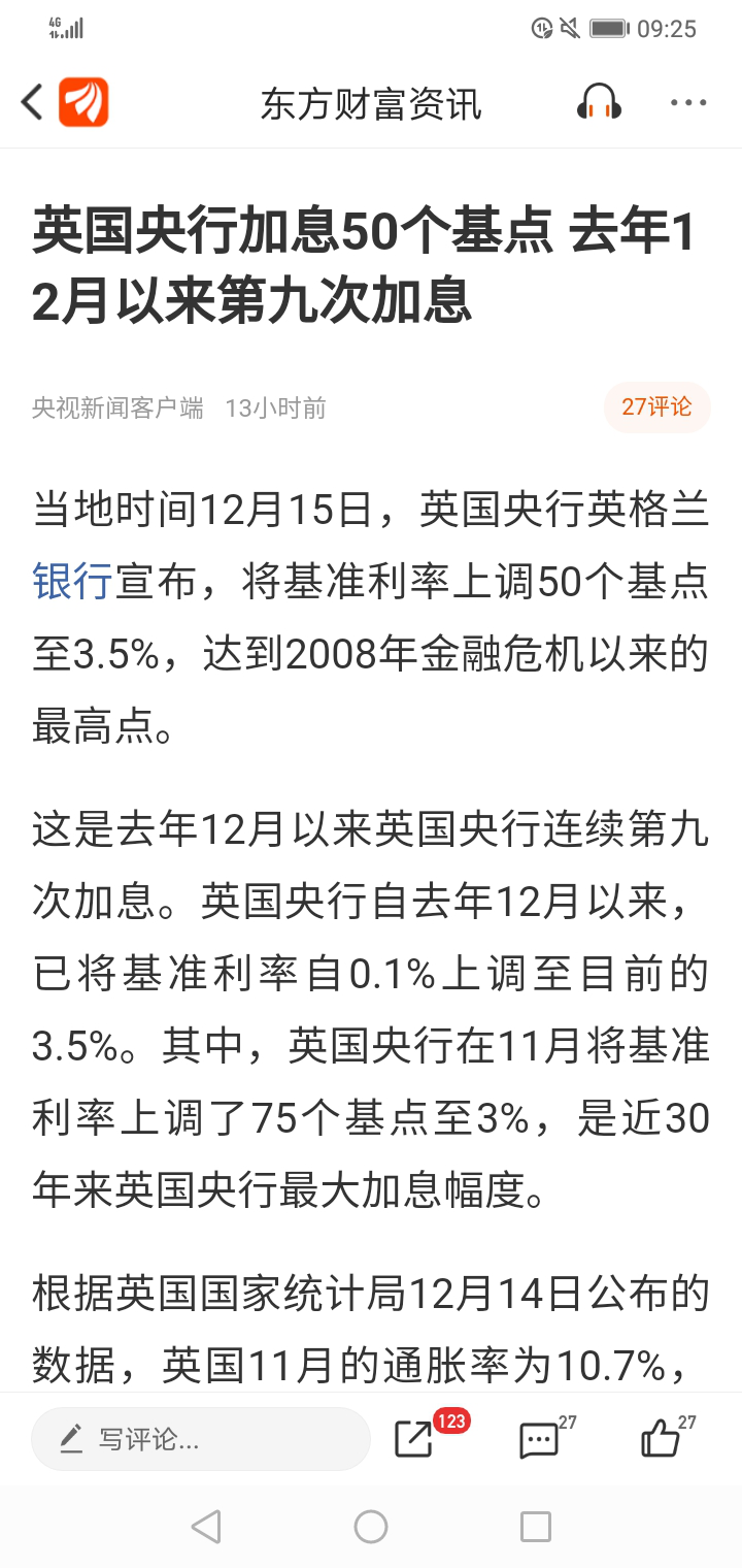草根陈劲松点评+转载(2022.12.16):美国、英国加息。