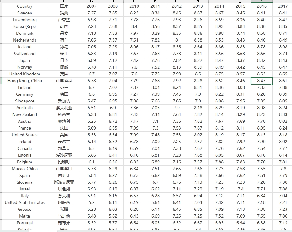 数据区间为2007-2017年,报告中2009年数据缺失。