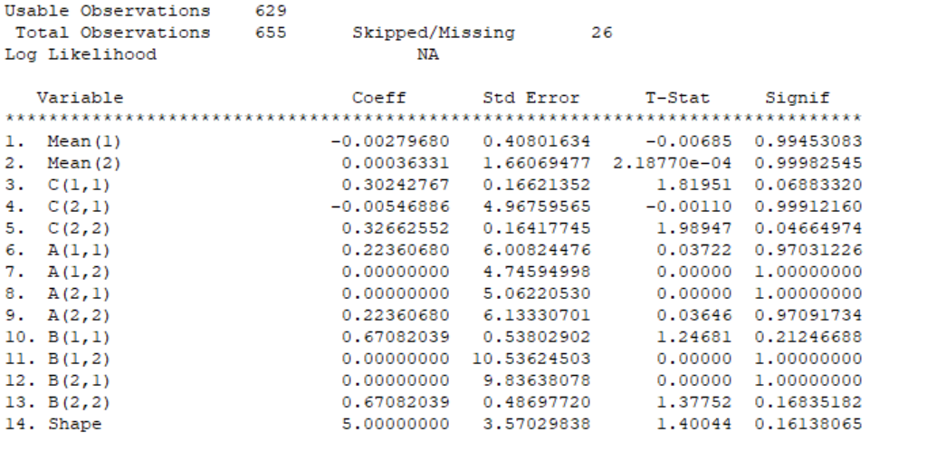 RESTARTING ESTIMATION FROM LAST ESTIMATES OR DIFFERENT INITIAL GUESSES MIGHT ALSO WORK