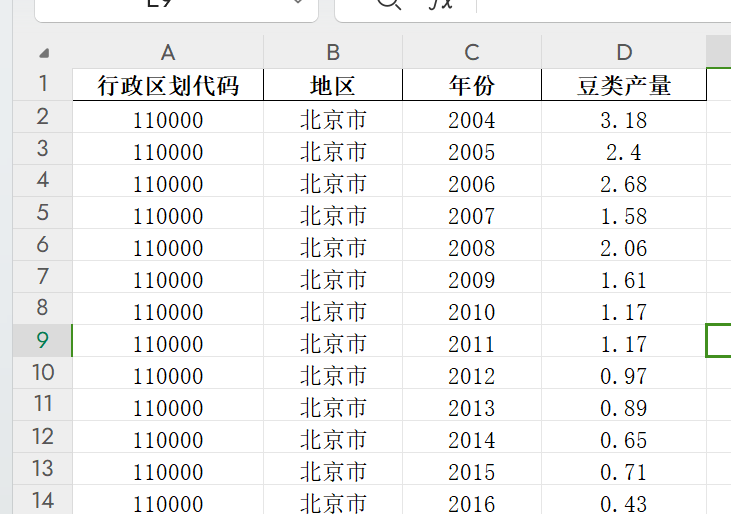 分省豆类产量2004-2020.xlsx