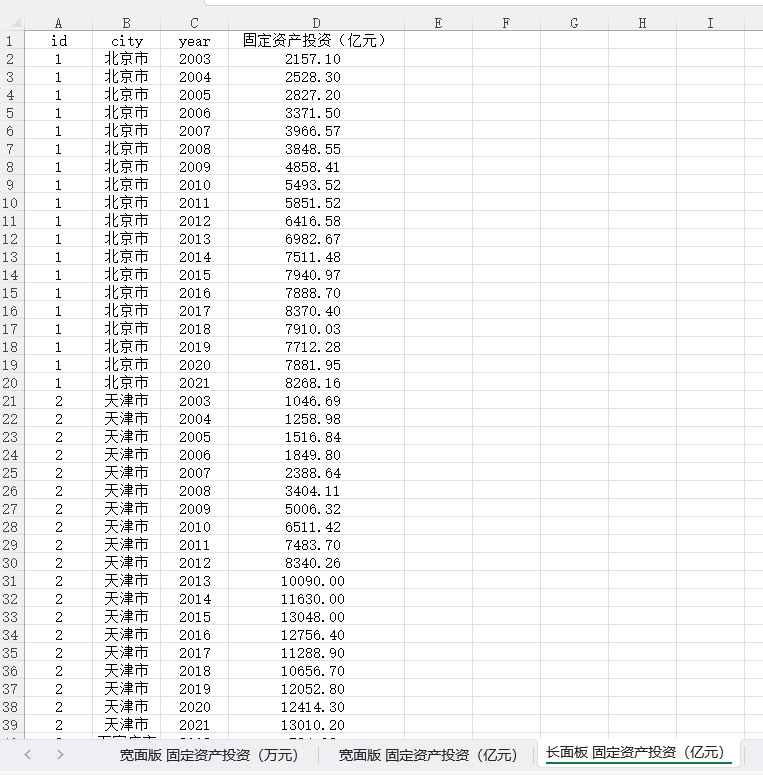 【最新数据】2004-2021年各地级市固定资产投资额