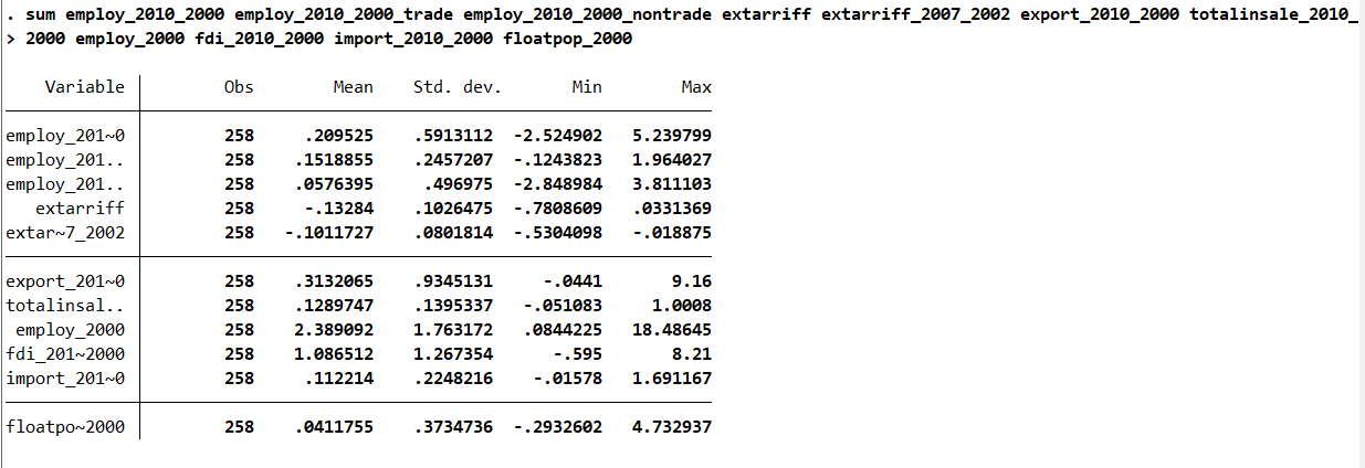 输出描述性统命令如下, 可导出到word里将变量名显示完全