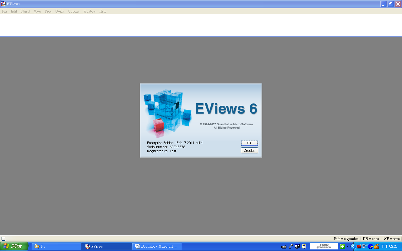 ylhsu 发表于 2011-9-15 00:29 安裝時序號為demo 若要註冊只需執行Eviews.reg即可 若想更改原來的Eviews.reg, 只需更改自己的名字和機 ...