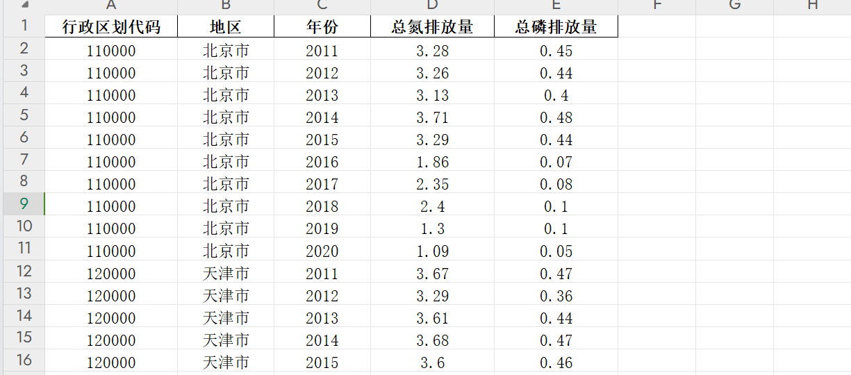 分省总氮排放量+总磷排放量2011-2020分省总氮排放量+总磷排放量2011-2020
