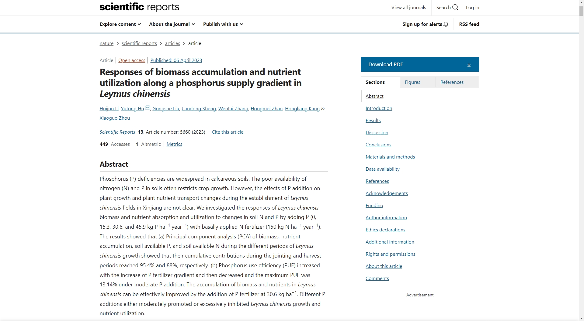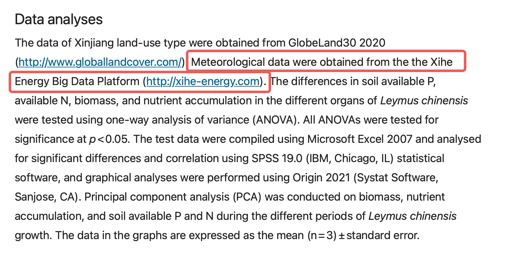 近期,羲和能源大数据平台数据被国际知名学术期刊Nature旗下Scientific Reports刊发的文章《Responses of biomass accumulation and nutrient utilization along a phosphorus supply gradient in Leymus chinensis》引用。