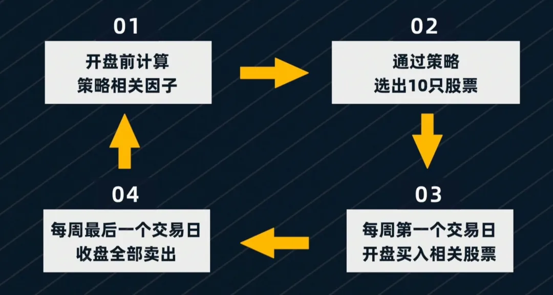 等到下周开盘前再重新选股,开盘时继续买入,如此循环往复。