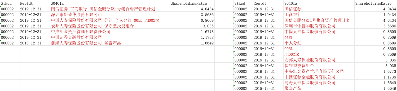 | 000002 | 2019-12-31 | 中国人寿保险股份有限公司 | 0.8609 |