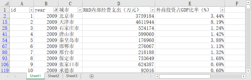 全国266个地级市城市2009-2021R&D内部经费支出外商投资占GDP比率对外开放水平.xlsx