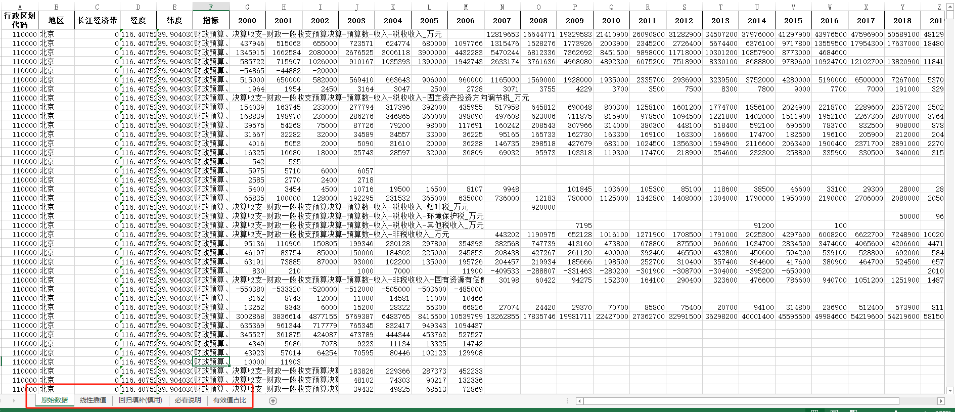 《中国财政年鉴》数据库(包含四个页签:原始数据、线性插值、ARIMA填补、有效统计值四个页签)
