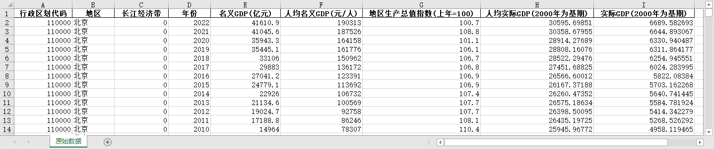 全国31个省份名义GDP实际GDP人均名义GDP地区生产总值指数2000-2022各地区-原始和结果(2000-2022年)