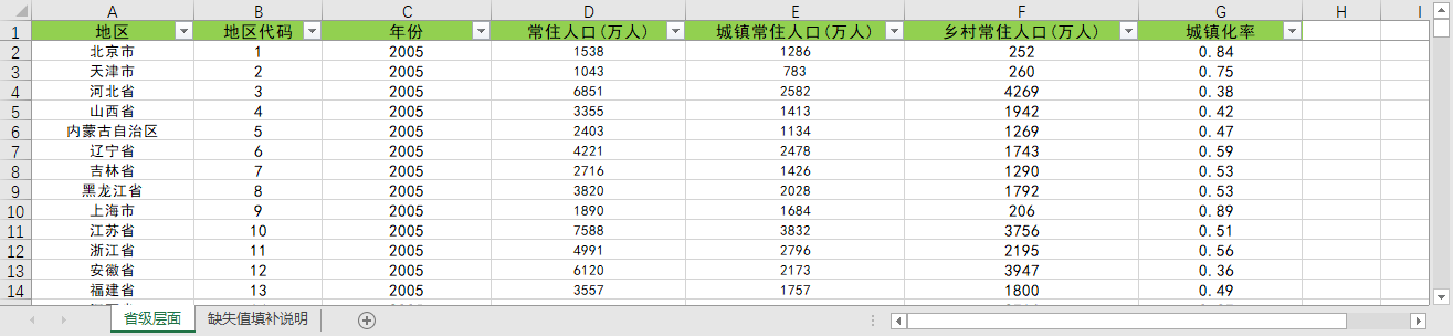 数据为平衡面板数据,已填补所有的缺失值,缺失值的处理方法在详见表格中的“缺失值填补说明”