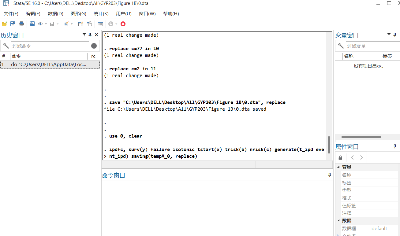 stata输入ipdfc, surv(y) failure isotonic tstart(x) trisk(b) nrisk(c) generate(t_ipd event_ipd) saving(tempA_0, replace)这串命令之后就突然卡住了,