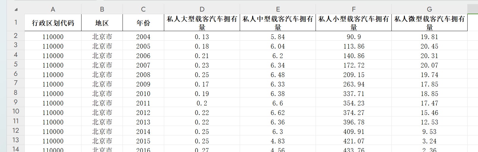 指标包括:私人大型载客汽车拥有量 私人中型载客汽车拥有量 私人小型载客汽车拥有量 私人微型载客汽车拥有量