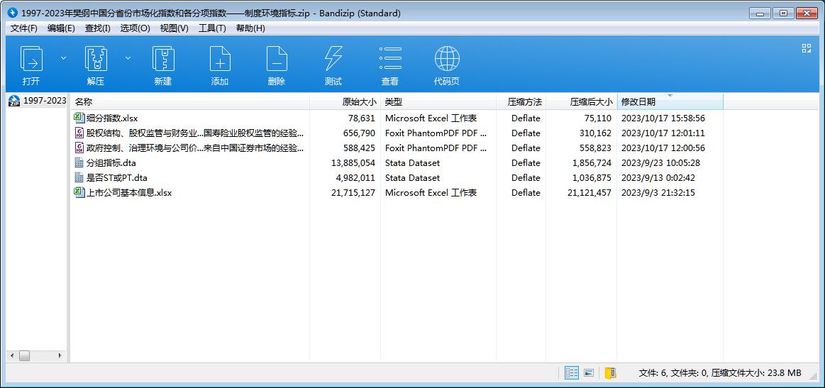 由于外部治理环境在不同年度间的变化相对稳定,所以用现有最新的一年数据(2019年)代替尚未披露信息年度的数据(2020-2023年)。