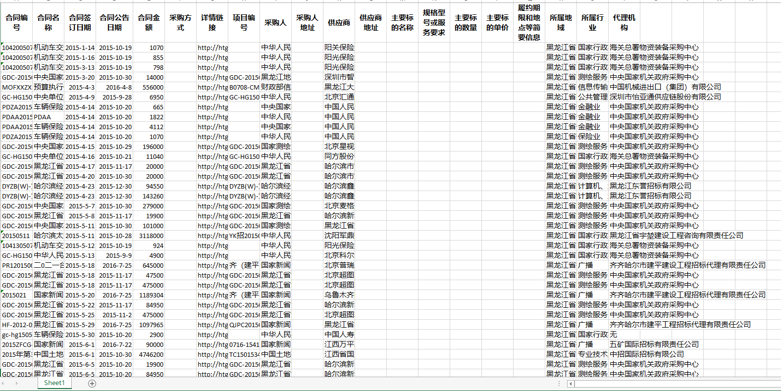 合同编号名称采购人供应商所属地域所属行业代理机构等等