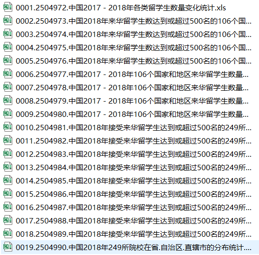 教育部国际合作与交流司编写2017-2018年《来华留学生简明统计》,Excel版本。数据示例: