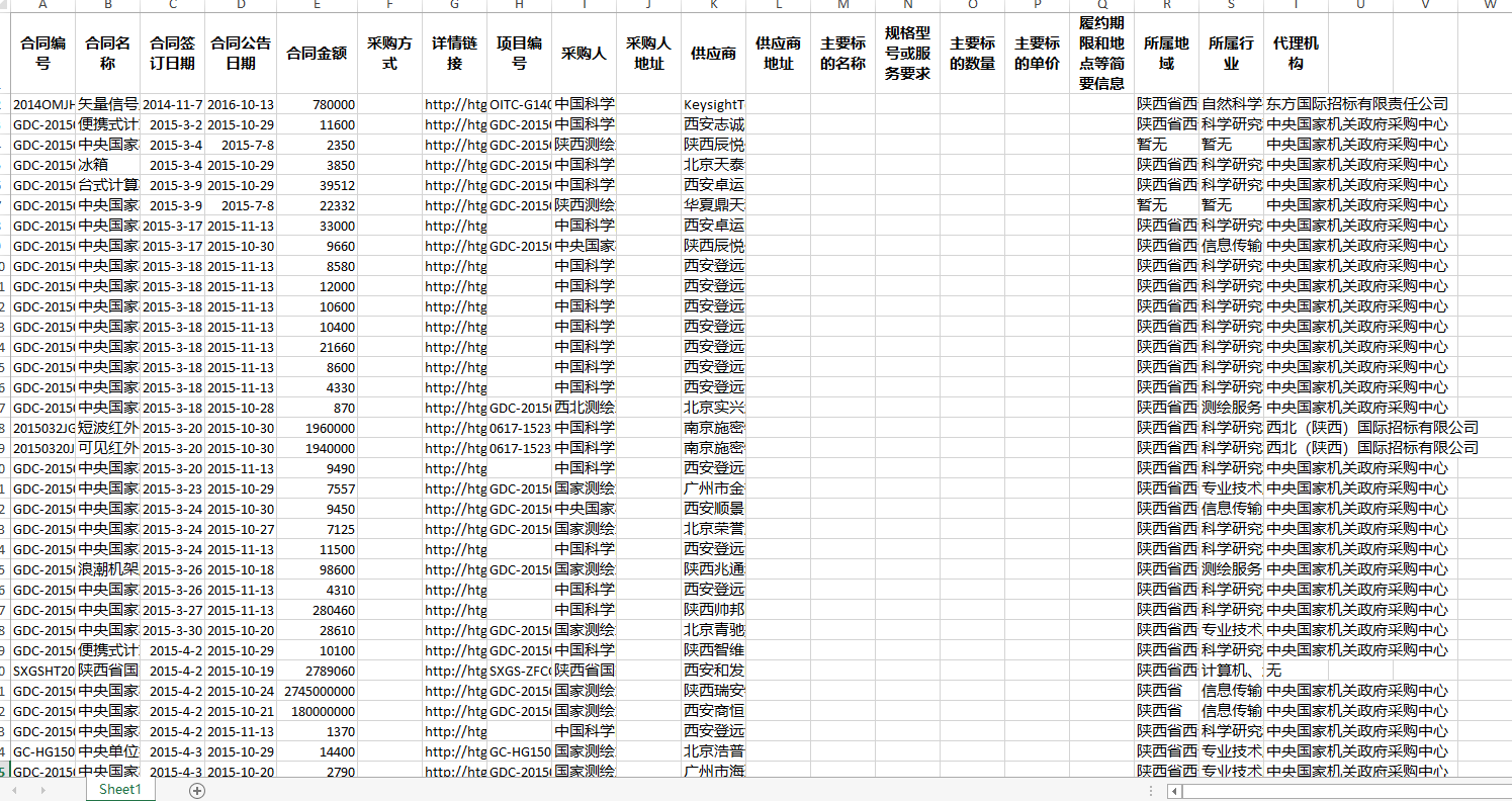 合同编号名称采购人供应商所属地域所属行业代理机构等等
