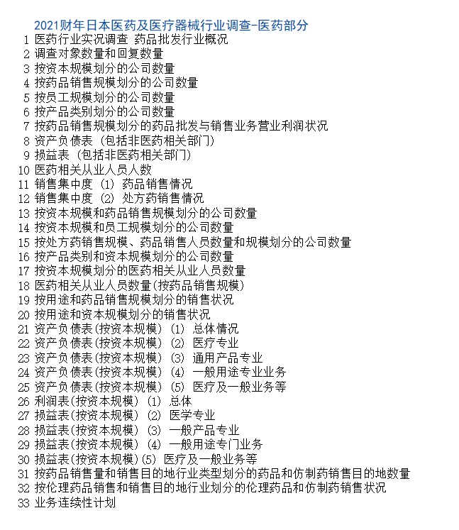 2021年日本医药及医疗器械行业调查数据-医药部分/医疗器械部分2023年3月更新