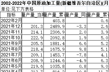 2002-2022年中国原油加工量(新疆维吾尔自治区)(月度).xlsx