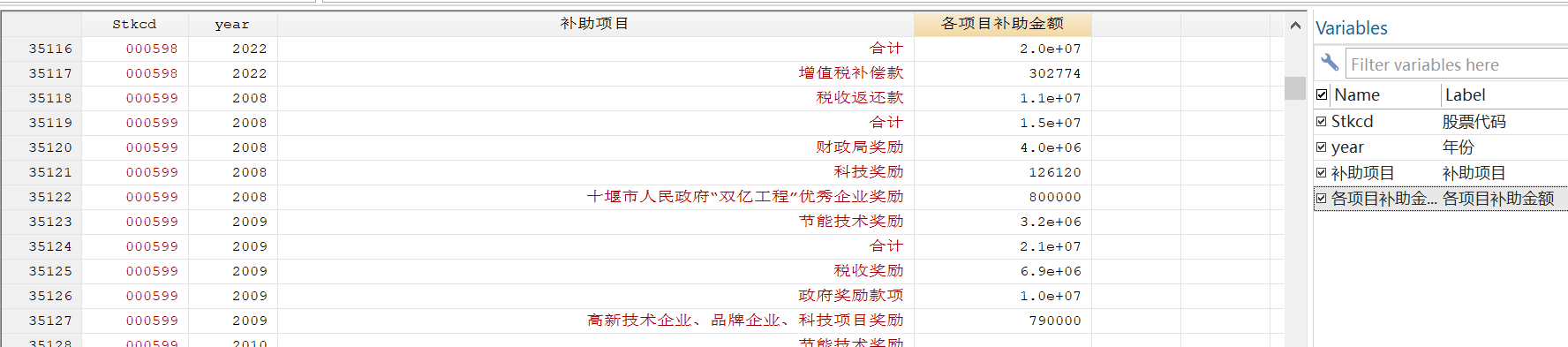 附件1 原始数据-政府补助细分项目及各项目补助金额(2003-2022)