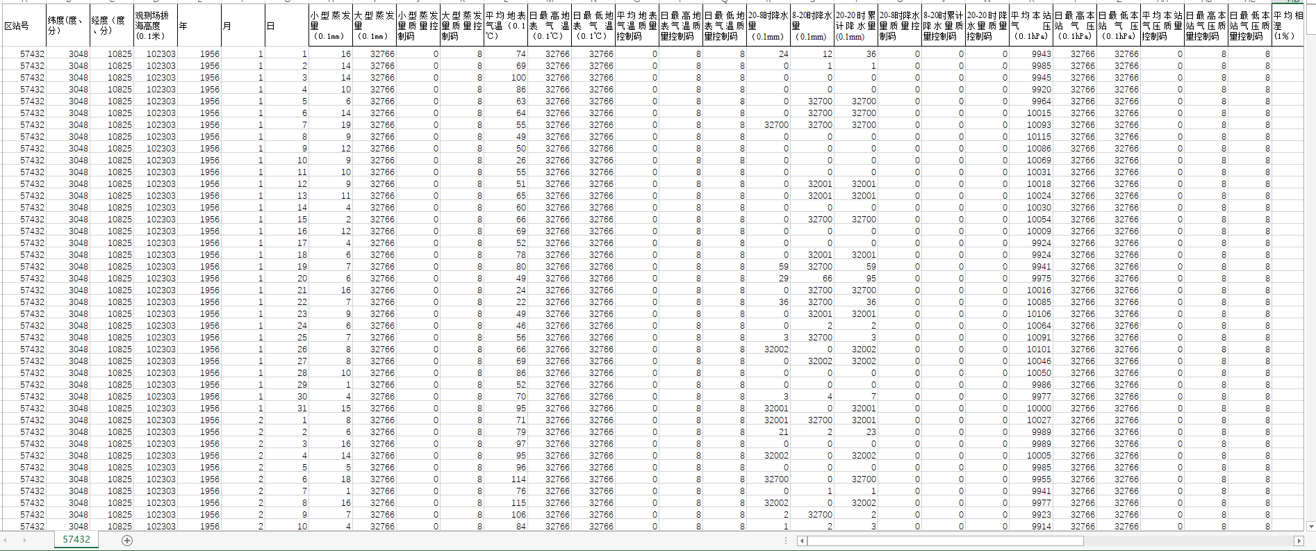 | 日最高本站气压质量控制码 |