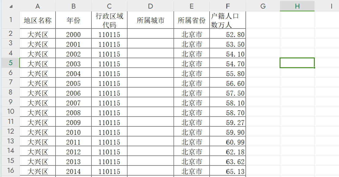 指标包括:地区名称 年份 行政区域代码 所属城市 所属省份 户籍人口数万人
