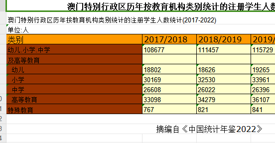 澳门特别行政区历年按教育机构类别统计的注册学生人数统计(2017-2022).xls