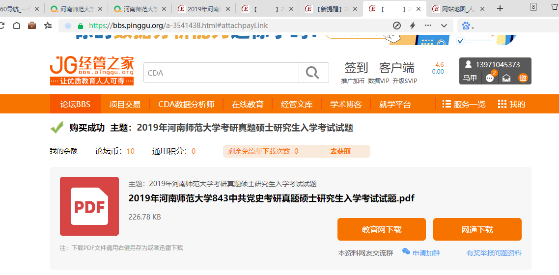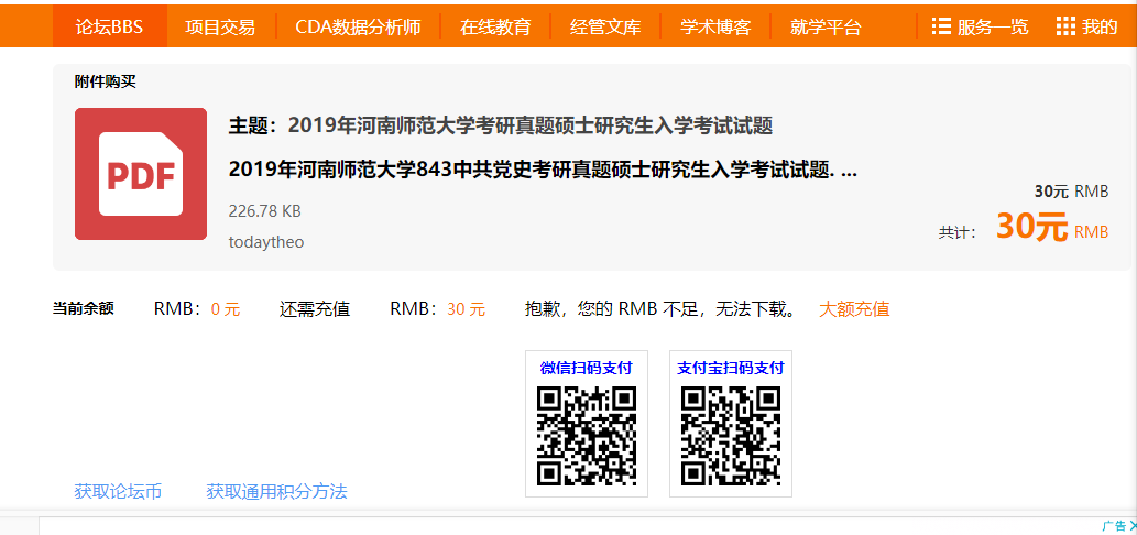 今天花了30元人民币,购买了一份河南师范大学2019的中共党史考研真题。值了。