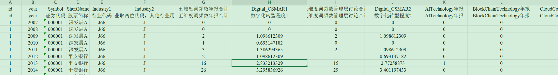 Digital2=以上5维度的词频数总和加一,取自然对数(管理层讨论)