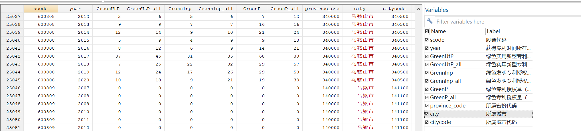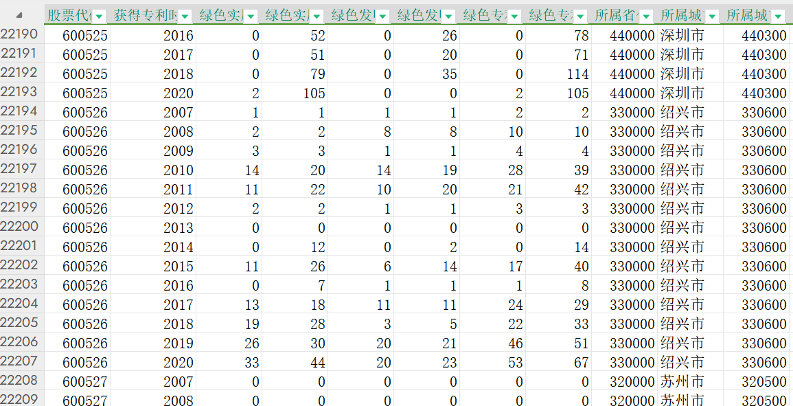 上市公司绿色创新/绿色专利授权量/绿色发明专利/绿色实用新型专利,2007-2020,整理好的面板数据,excel及stata版本