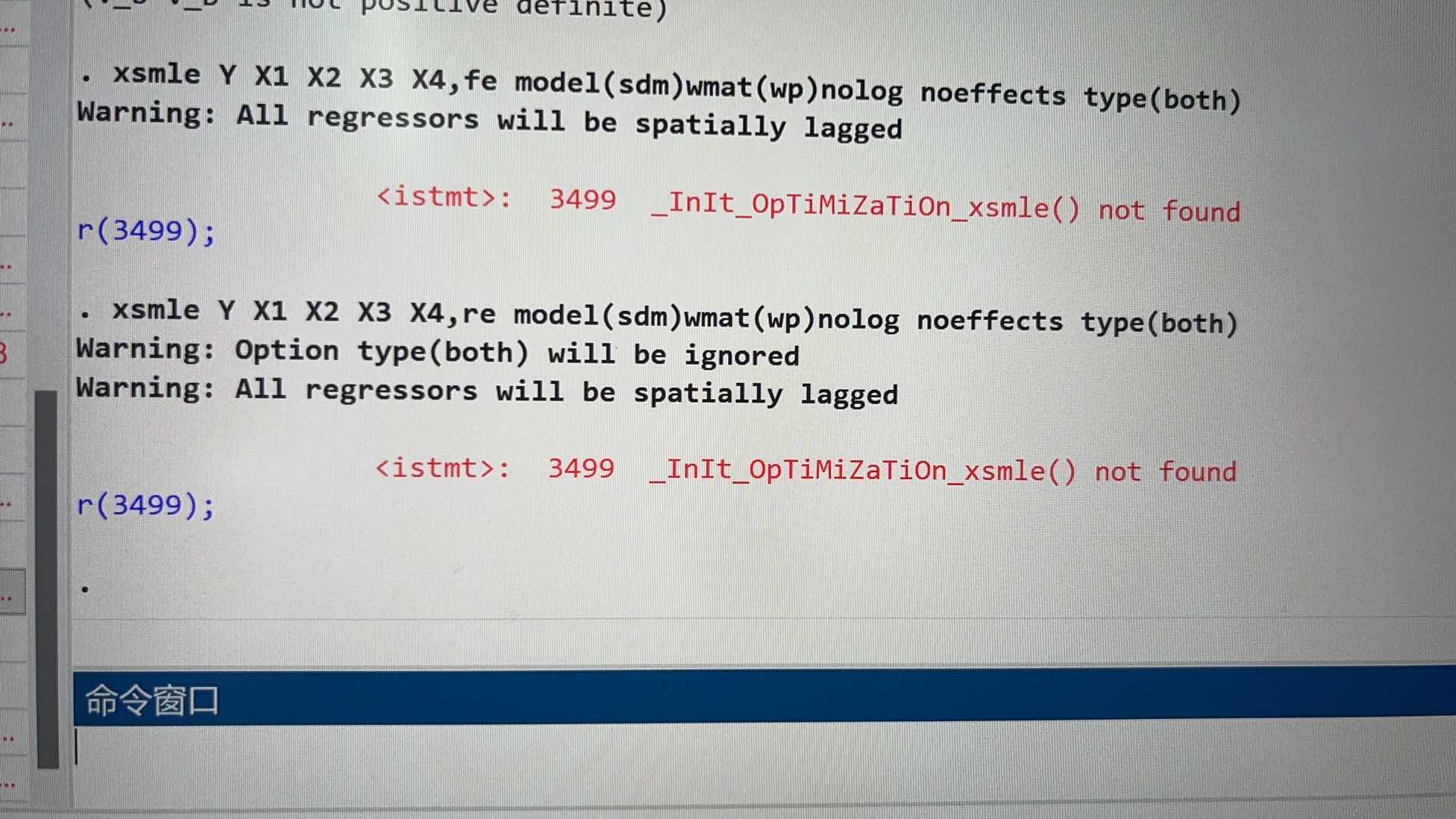 stata使用xsmle命令是一直报错3499,已经安装过这个命令包了