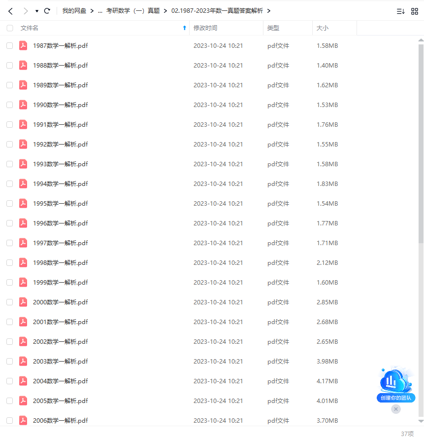 考研数学2024:1987-2023年考研数学一真题+解析的网盘链接.docx