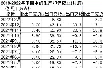 2018-2022年中国水的生产和供应业(月度).xlsx