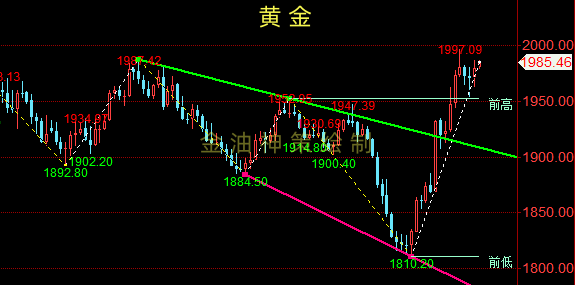 策略一:回调1975-1978附近多单进场,止损6美金,目标1989-1995一线;