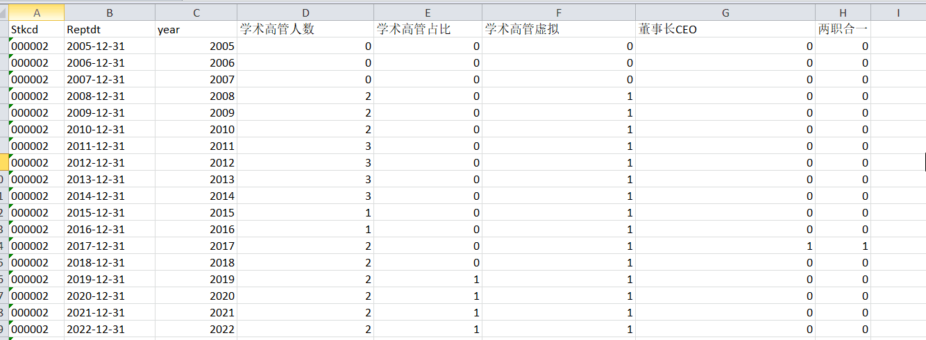 1.资料名称:2022-2005年上市公司企业高管学术经历背景测算数据