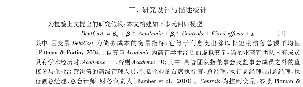 周楷唐, 麻志明, 吴联生. 高管学术经历与公司债务融资成本[J]. 经济研究, 2017, 52(7):15.