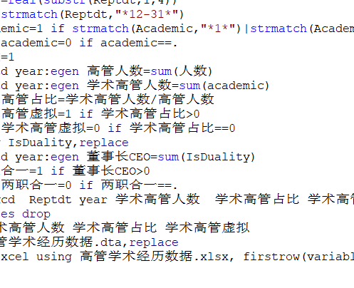 2.测算方式:参考《经济研究》周楷唐(2017)老师的研究,当企业高管团队内有成员具有学术经历时,Academic = 1,否则 Academic = 0; 其中,高管团队指董事会及监事会成员之外的直接参与企业经营决策的高级管理人员,包括企业的首席执行官、总经理、执行总经理、副总经理、执行副总经理、总会计师、财务负责人,具体大家可以看一下文献,与文献研究一致!