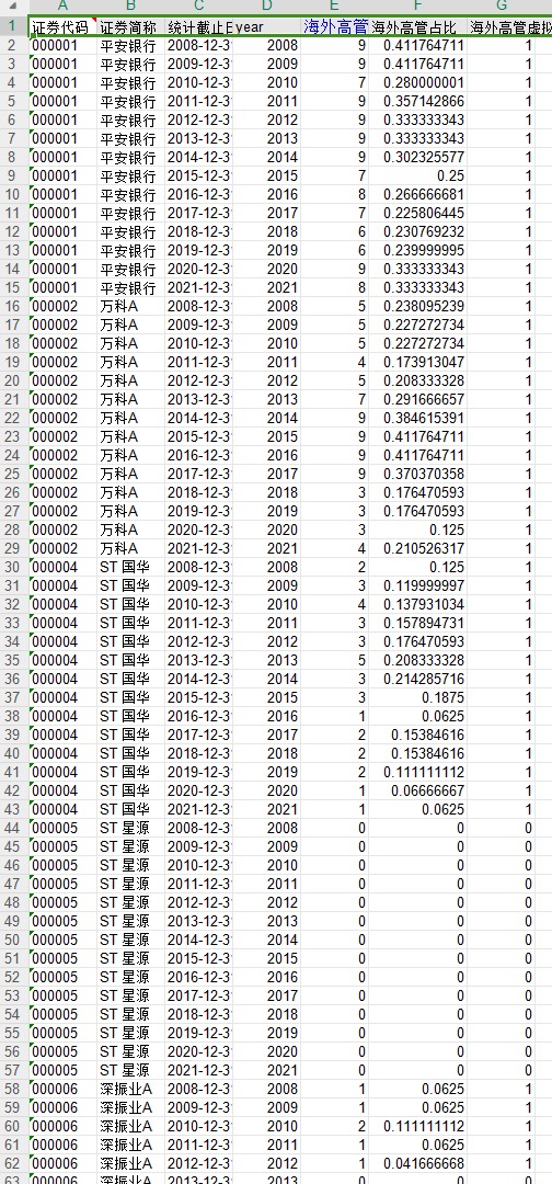 证券代码证券简称海外高管人数2021-2008海外高管占比海外高管虚拟包括原始数据、计算