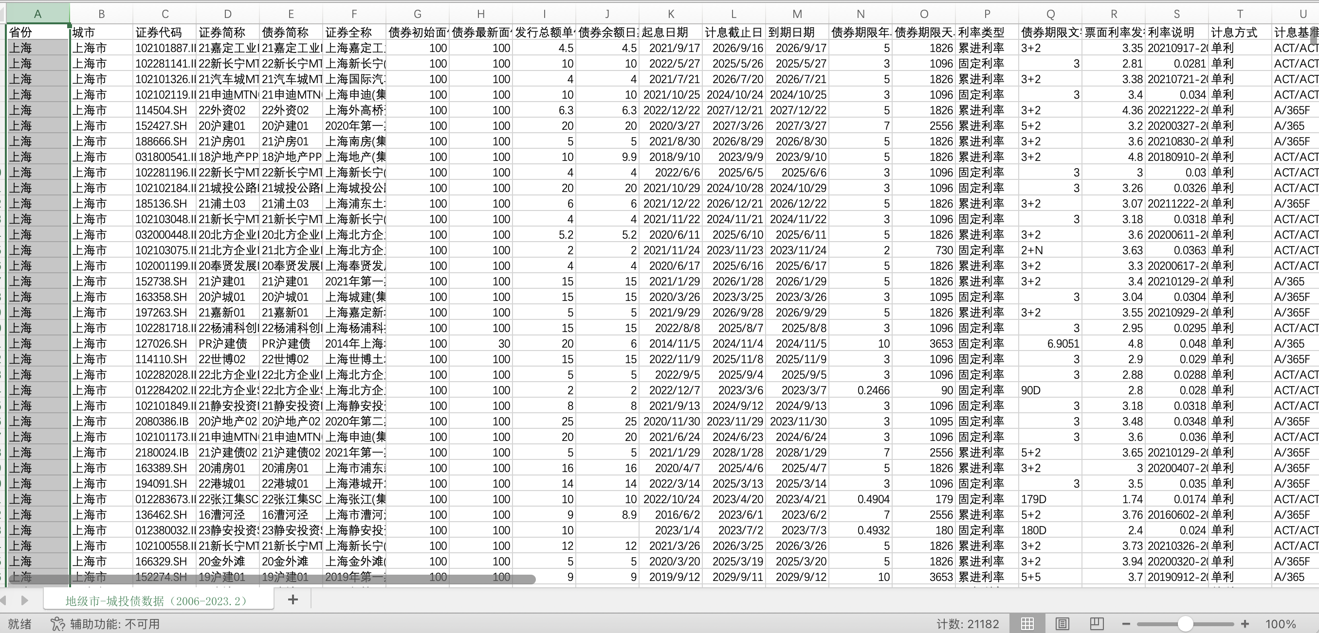 全国各省城市地级市城投债数据债券名称面值期限利率发行信息交易日期(2006-2023.2)